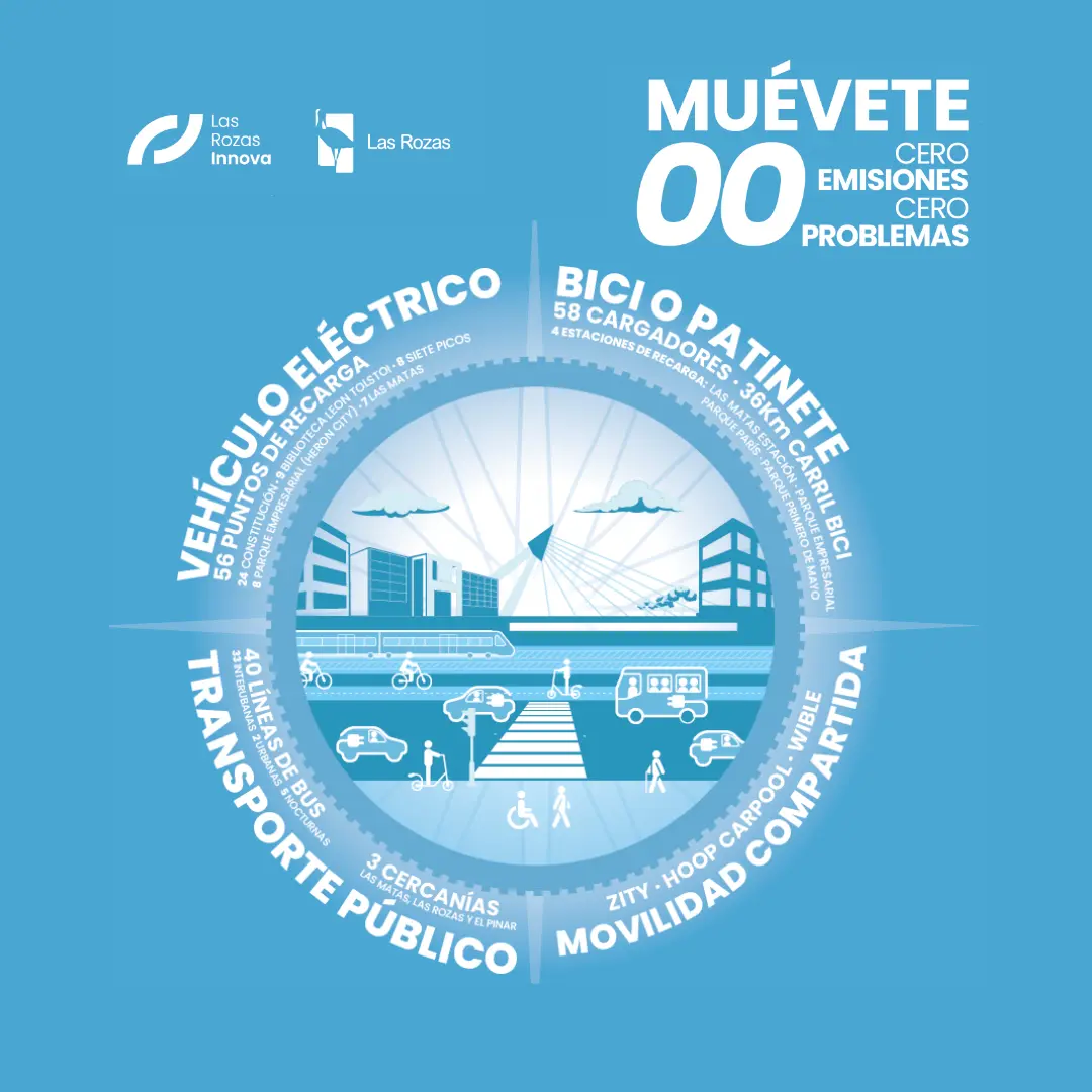 Campaña informativa y de concienciación de los diferentes modos de movilidad sostenible en Las Rozas, bajo el lema "Muévete 00: cero problemas, cero emisiones".